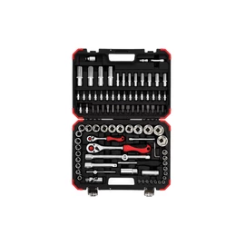 R46003094 dugókulcs készlet 1/4" 1/2" 94 darab; Kartárcsás, finom fogazású, 72 fogas, Hosszabbító 125 250 mm, T-markolat = Adapter + Hosszabbító, Univerzális csukló, Dugókulcs 1/4" + 1/2", hatszögletű, metrikus, rövid, DIN 3124, ISO 2725 szerint, Dugókulcs 1/4" + 1/2", hatszögletű, metrikus, hosszú, DIN 3124, ISO 2725 szerint, Gyújtógyertya dugókulcs 1/2" préselt tartó gumi, Gyújtógyertya dugókulcs 1/2" préselt tartó gumi és extra hajtómű hatszög Méret 24, Csavarhúzó bitek dugókulcs 1/4", hatszögletes csavarokhoz, préselt, foszfátozott tűvel, Csavarhúzó bitek dugókulcs 1/4", lapos, préselt, foszfátozott tűvel, Csavarhúzó bitek dugókulcs 1/4" PH préselt, foszfátozott tűvel, Csavarhúzó bitek dugókulcs 1/4" PZ préselt, foszfátozott tűvel, Csavarhúzó bitek dugókulcs 1/4", TX, préselt, foszfátozott tűvel, Dugókulcs hosszabbító 1/4" + 1/2", Csúszó T-kar csúszóval 1/4", DIN 3122, ISO 3315 szerint, Univerzális csukló 1/4" + 1/2", csavarozott csuklóval, DIN 3123 - C 12,5 szerint, Átalakító/csúszó 3/8" x 1/2" dugókulcsok és csavarhúzó bitek hajtásához, Bitek adapter 1/2", női négyzet és belső hatszög, minden bitekhez és eszközökhöz 5/16" külső hatszög, Bit 5/16", hatszög, lapos, PH, PZ, TX a tartóhoz DIN ISO 1173 - D 8 szerint, Hajlított dugókulcs kulcskészlet, DIN ISO 2936 szerint, Kézi csavarozáshoz, Króm-vanádium acél, matt szatén króm-bevonattal, Műanyag tok GEDORE piros kivitelben, Rögzített eszközök, Fém zsanérok/rögzítő