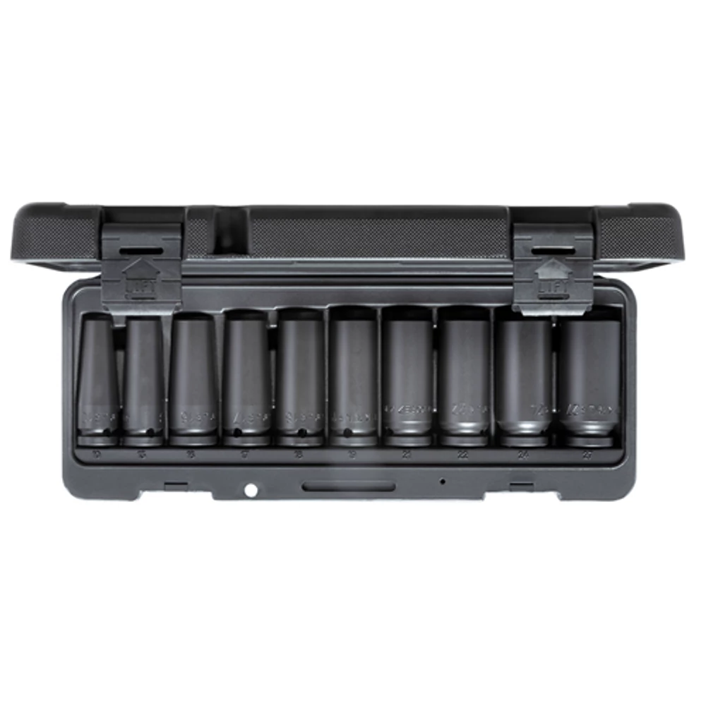 Mély ütvecsavarozó dugókulcs készlet 1/2" 10 darabos